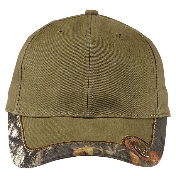 Enjoy sporting this Paramount Apparel Earth Olive/Realtree Xtra Green Brushed Cotton Twill Cap out in the wild with its fine embossed emblem featured on the bill. The cotton twill surface adds a smooth and solid color that lets your company's logo stand out perfectly. The camo accent on the front part of the bill blends in well too. The emblem matches up with the rest of the hat too. This is a striking design that people will want to wear at any unique hunting event, although this may also work well for when you are looking to promote special offers and products at your business.Highlights