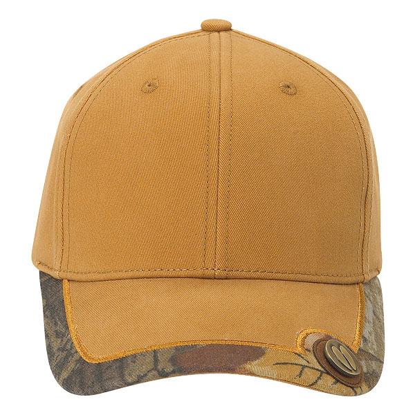 Enjoy sporting this Paramount Apparel Bronze/Realtree Max-5 Brushed Cotton Twill Cap out in the wild with its fine embossed emblem featured on the bill. The cotton twill surface adds a smooth and solid color that lets your company's logo stand out perfectly. The camo accent on the front part of the bill blends in well too. The emblem matches up with the rest of the hat too. This is a striking design that people will want to wear at any unique hunting event, although this may also work well for when you are looking to promote special offers and products at your business.Highlights