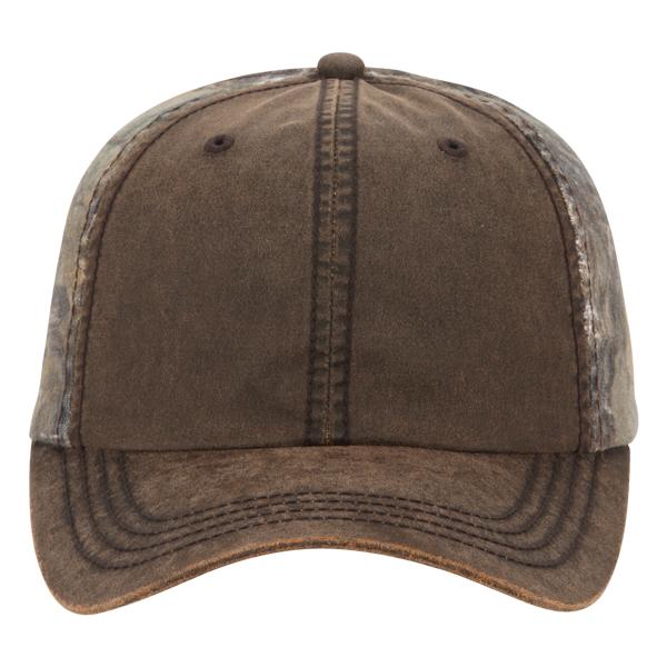 You will notice two intriguing details on this Paramount Apparel Realtree Xtra Brown/Brown Wax Cloth Camo Cap. First, there is a solid wax cloth front that offers a heavy stone wash surface. The design has more than enough room for a custom logo. Second, you will see a camo rear that features a light or dark tone showing off branches and other outdoor things. You can order this to promote athletic or leisure activities or as a gift for people who do business with you. Either way, your logo will stick out well when you have plastered it on the front of this cap.Highlights