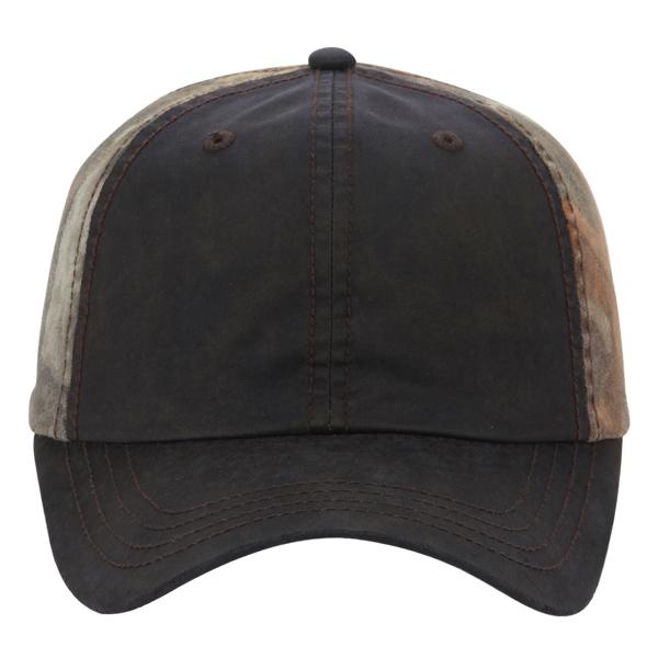 You will notice two intriguing details on this Paramount Apparel Advantage Timber/Black Wax Cloth Camo Cap. First, there is a solid wax cloth front that offers a heavy stone wash surface. The design has more than enough room for a custom logo. Second, you will see a camo rear that features a light or dark tone showing off branches and other outdoor things. You can order this to promote athletic or leisure activities or as a gift for people who do business with you. Either way, your logo will stick out well when you have plastered it on the front of this cap.