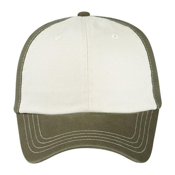 The tones on this Paramount Apparel Stone/BSA Olive Caps 101 Two-Tone Washed Cap provide a nice canvas for any company's custom logo. The white base has enough room for your company's branding that you can use to promote your company at the next big corporate event. You can choose from many colors that fit in with the logo you wish to add or with your business' general branding scheme. But no matter what you choose, you will find a nice cotton twill surface on this cap with an unstructured jockey fit.