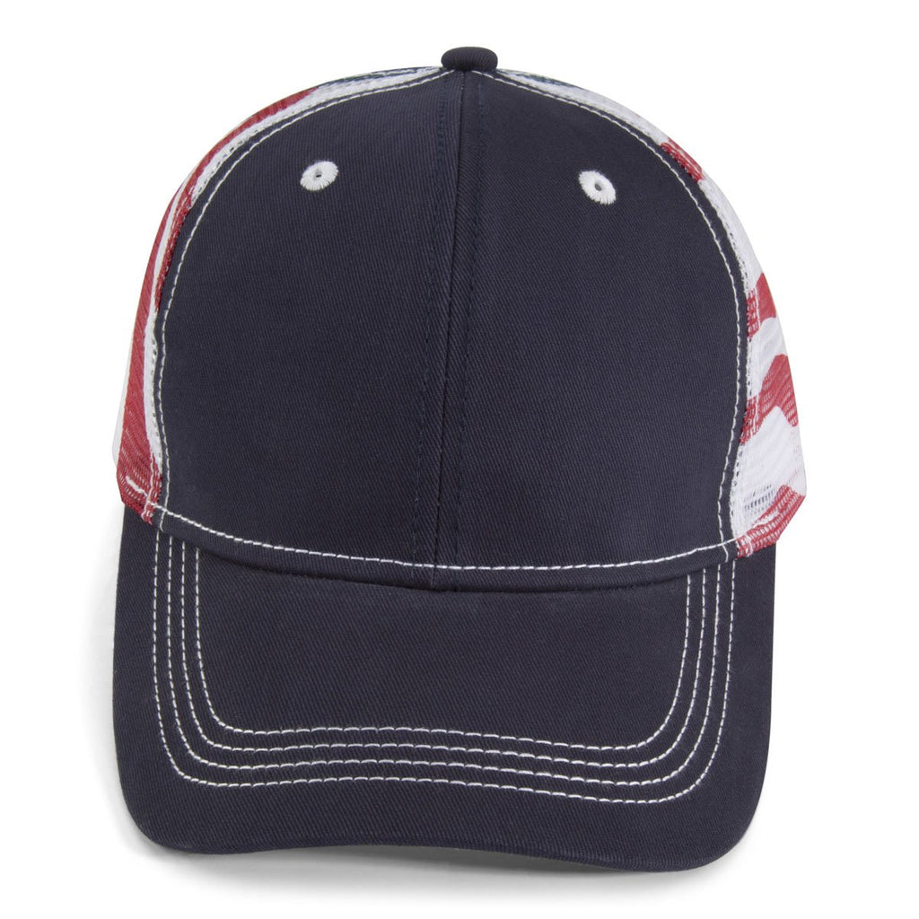 The fine design of this Paramount Apparel Navy Patriotic Flag Design Cap will show off your love for the USA The organization features an American flag design on the mesh back surface. The front offers a navy blue tone that blends in perfectly. The dual design of this cap comes with a lightweight cotton twill body and a surface for any custom logo you wish to add. You can use this design for a military-themed event that you need a giveaway for. This can also be sold at your retail spot to people who love their country as much as they love what you are offering.Highlights