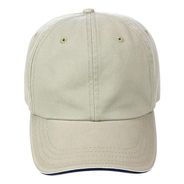 The Paramount Apparel Navy/Stone Contrasting Sandwich Visor Garment Washed Cap uses a sandwich visor that features a contrasting color that goes opposite the main color on this cotton twill hat. The added color effect produces a smooth and attractive surface that will complement your company's custom logo well. This hat is perfect as part of a company uniform, or use it as a marketing tool to spread the word about your brand outside of the office. Either way, this cap is a comfortable choice that your employees will appreciate.