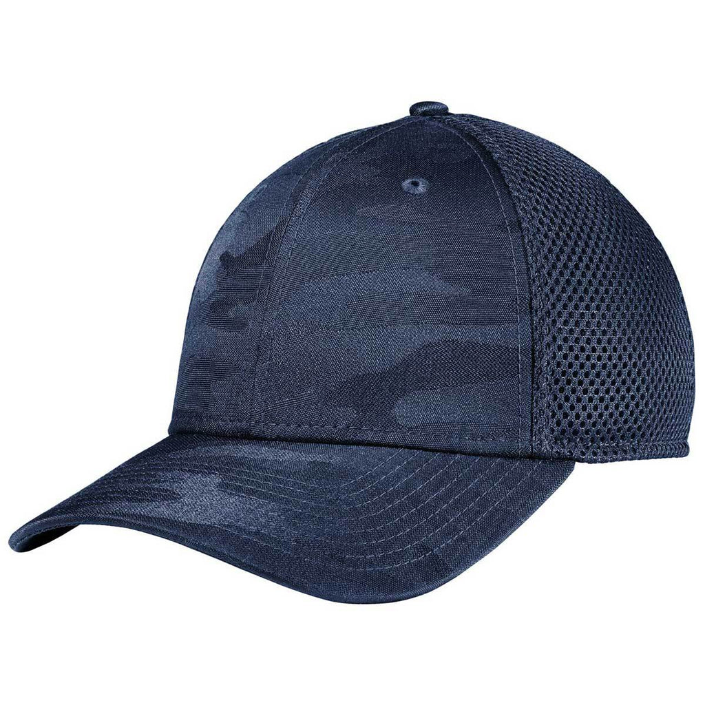 Create a look for your next team event with an embroidered New Era Navy Camo Tonal Camo Stretch Tech Mesh Cap. The sporty tonal camo cap provides stretch for further comfort. Add a custom logo to offer these as employee gifts for nearly any occasion as one size will fit most with the stretch fit. Made of 100% polyester front panels and bill with a polyester mesh mid and back panel, this structured, mid-profile cap will be an instant hit. Perfect as gifts or prizes for corporate events, people will remember your name with this unique form of advertising.Highlights