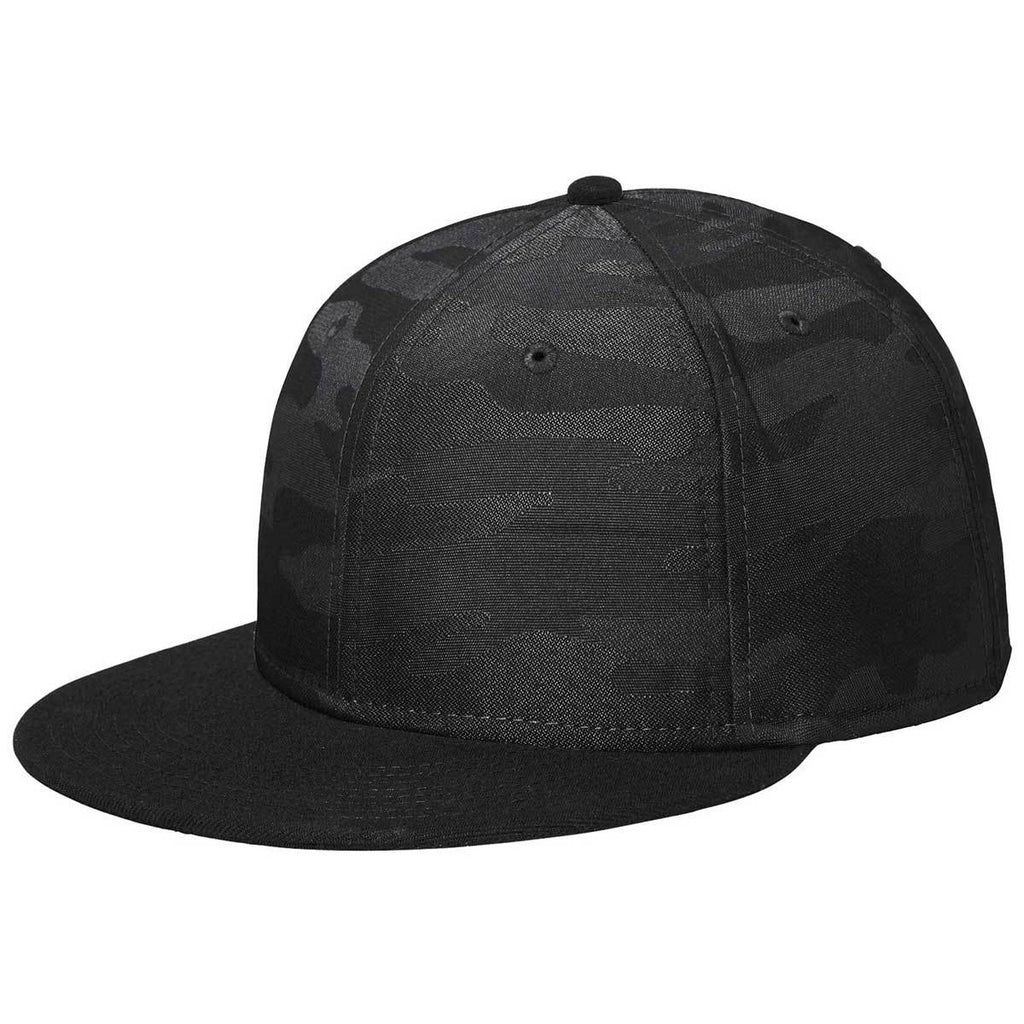 Protect your eyes with a custom embroidered New Era Black/Black Camo Camo Flat Bill Snapback Cap. The sleek, yet understated design of the tonal camo cap has attitude and urban edge at its finest. Made of 100% polyester, this structured cap can be embroidered with your company logo or custom design and used as an end of the year gift or as part of a company uniform for those who work their hardest. The high profile cap has a 7 position adjustable snap to fit most wearers and will be a welcome addition to anyone's growing cap collection.Highlights