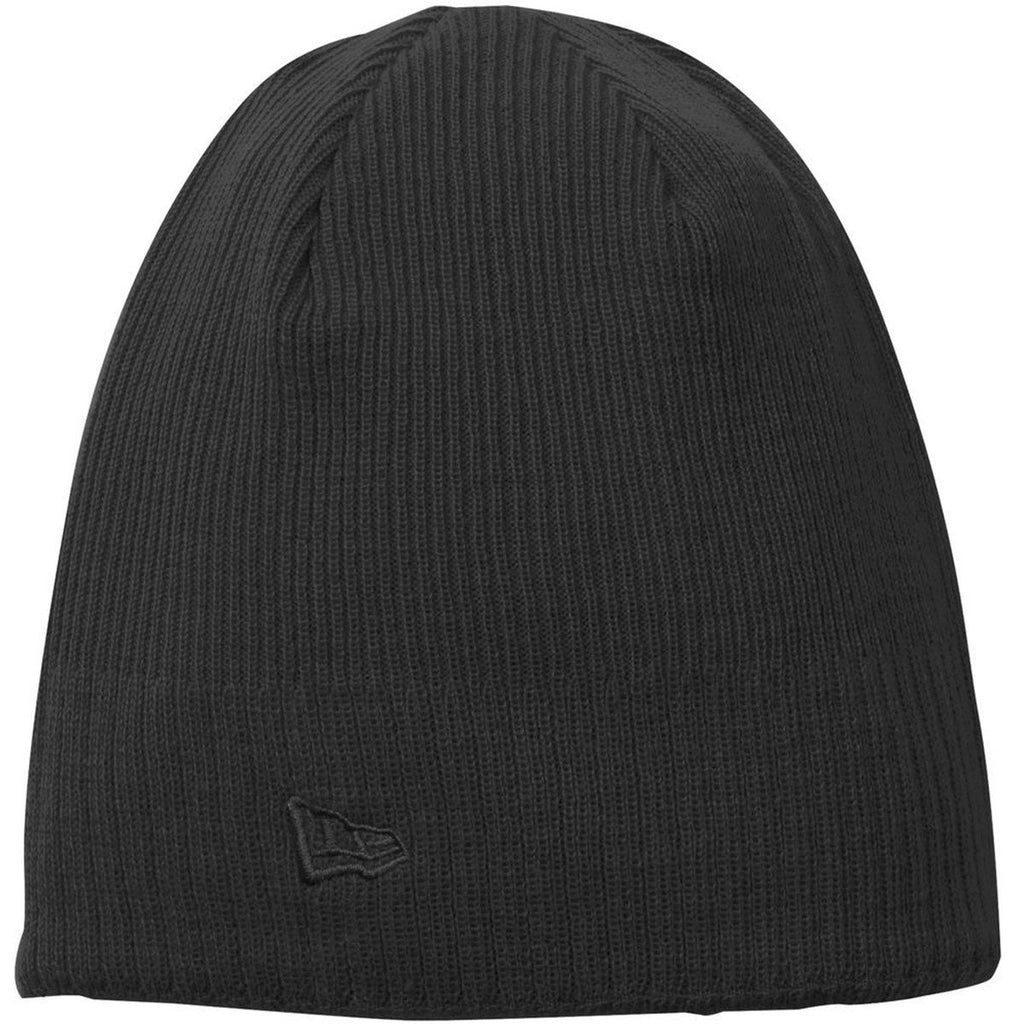 The New Era Black Knit Beanie Hat delivers warmth and comfort in a classic look that's perfect for customization. These custom winter hats are made with a 100% acrylic shell on the outside and a 100% polyester fleece lining on the inside to keep your ears warm for hours on end. Just add your custom embroidered company logo these wholesale black beanies for the perfect stocking caps for your entire team.
