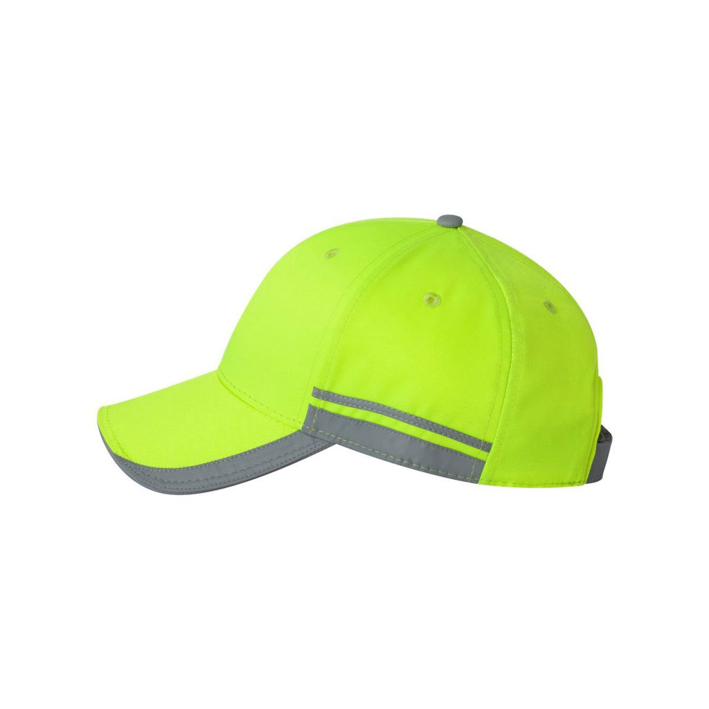 Attach a custom logo on the embroidered Outdoor Cap Safety Yellow Reflective Cap to attract the interest of everyone you meet at industry trade shows. Logoed corporate apparel is a highly effective way to break the ice at informal corporate events. One-hundred percent polyester resists the types of rips and tears that turn other styles of caps into shredded messes. Reflective fabric accents make the hat perfect for wearing at night, when motorists instantly spot you jogging or cycling near a road. Sewn eyelets add panache to a cap that works fashionably well on camping trips and at outdoor civic events.Highlights