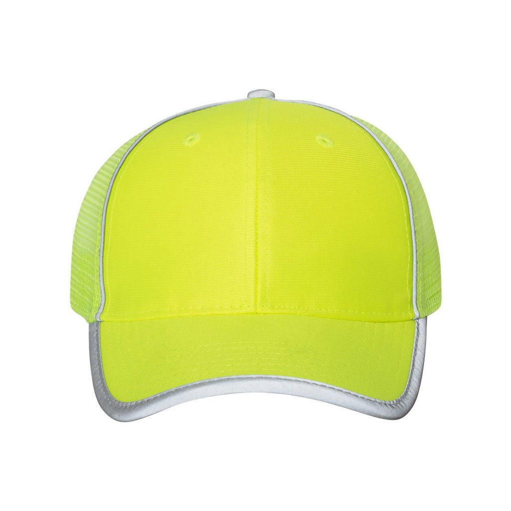 Add a custom logo on the embroidered Outdoor Cap Safety Yellow Safety Mesh Back Cap to spread the word about your company's products and services. The reflective hook and closure ensures you enjoy the optimal fit. Rugged safety mesh resists rips and tears to give you years of high performance use. Designed with 100% polyester, the sporty cap works great as the go to cap for outdoor recreational activities such as fishing and hunting. In fact, the mesh on the back of the cap is the perfect place to secure fishing lures. Adjust the pre-curved visor to account for the sun's changing position. The black under visor offer extra protection against harmful UV rays.Highlights