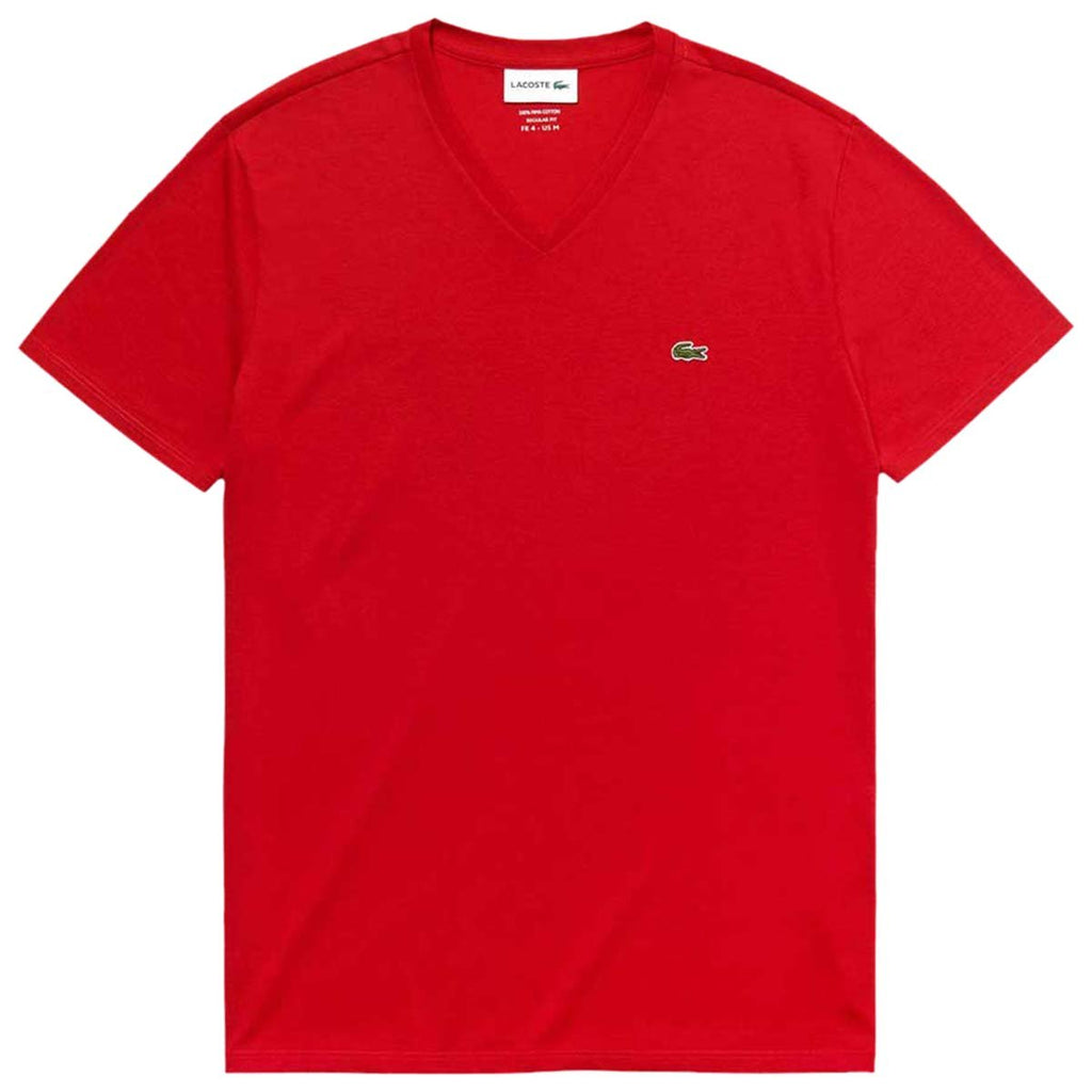 Lacoste Men's Red Short Sleeve Pima Cotton Jersey V-Neck T-Shirt