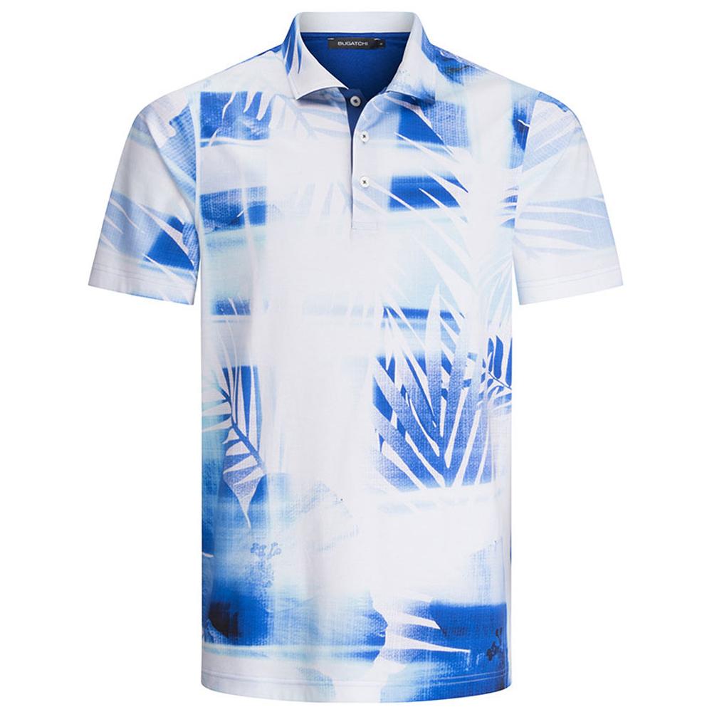 Bugatchi Men's Floral Turquoise Short Sleeve Three Button Self Collar
