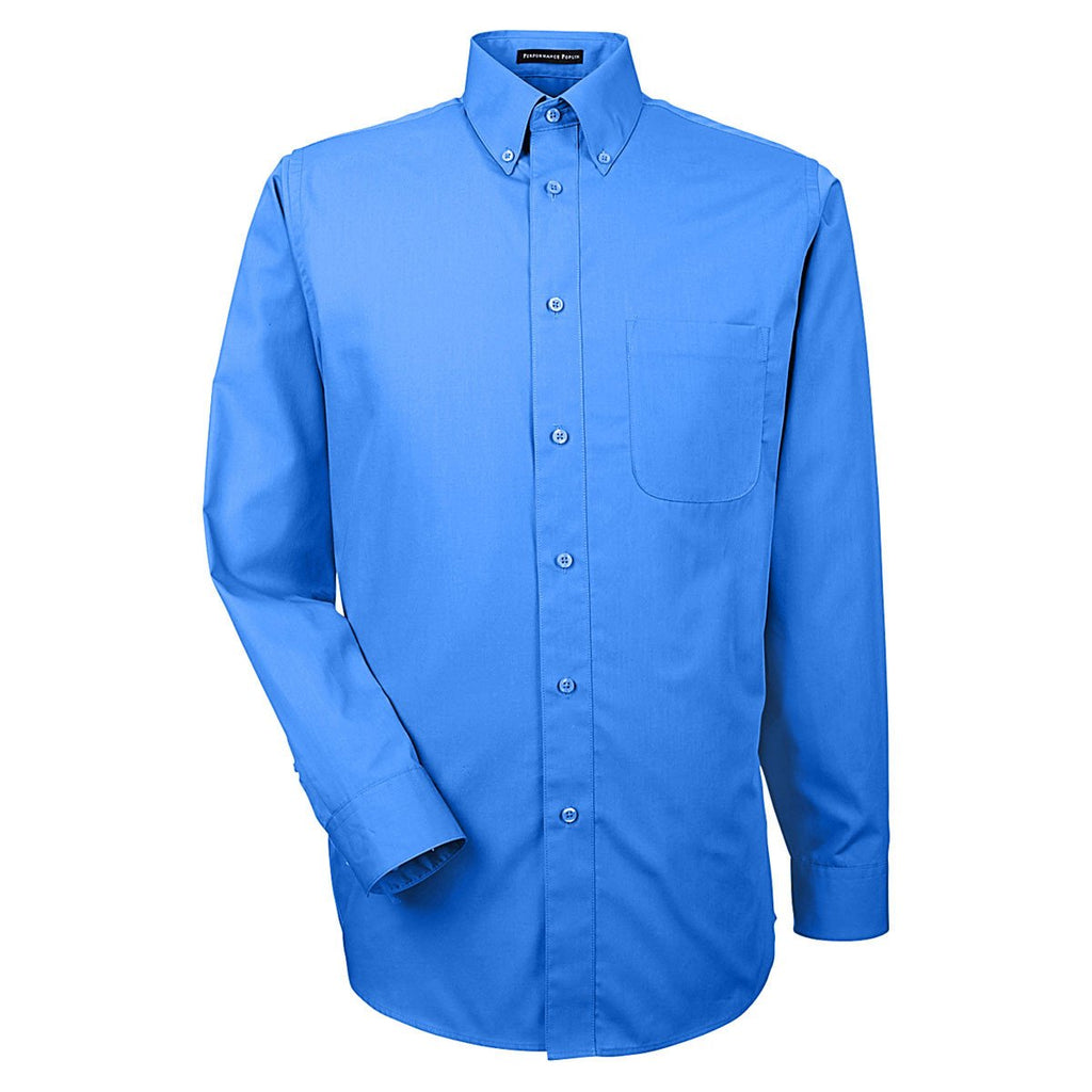 Lightweight cotton and polyester present a wrinkle-free appearance for the UltraClub Men's French Blue Performance Poplin. Wear the multi-purpose shirt for a business seminar and keep it on after work hours entertaining friends on your home patio. Tough to rip and tear fabric fibers resist the unsightly development of sweat stains. The top-fused center placket creates a bold fashion statement that leaves a positive lasting impression on everyone you meet. Take advantage of the positive lasting impression by attaching your company logo to the spacious imprint area. Dyed-to-match buttons and double-needle side-seam stitching complete the fashion features of the sleek poplin.Corresponding Women's Style: UltraClub Women's French Blue Performance Poplin