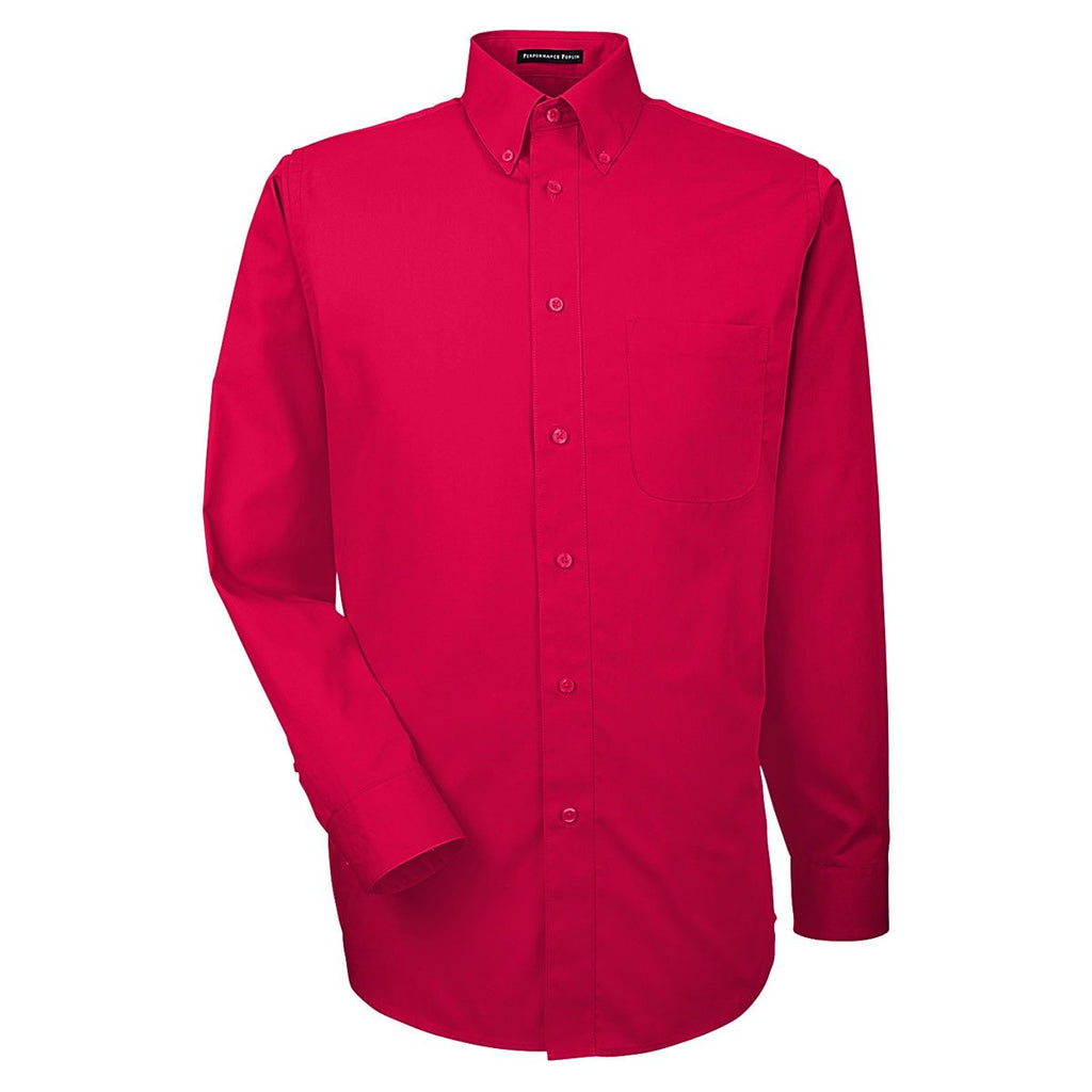 Lightweight cotton and polyester present a wrinkle-free appearance for the UltraClub Men's Red Performance Poplin. Wear the multi-purpose shirt for a business seminar and keep it on after work hours entertaining friends on your home patio. Tough to rip and tear fabric fibers resist the unsightly development of sweat stains. The top-fused center placket creates a bold fashion statement that leaves a positive lasting impression on everyone you meet. Take advantage of the positive lasting impression by attaching your company logo to the spacious imprint area. Dyed-to-match buttons and double-needle side-seam stitching complete the fashion features of the sleek poplin.Corresponding Women's Style: UltraClub Women's Red Performance Poplin