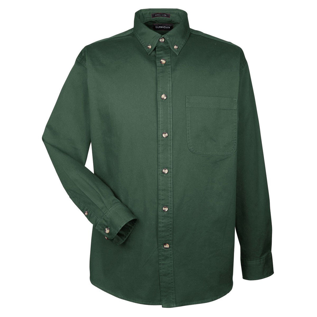 UltraClub Men's Forest Green Cypress Long-Sleeve Twill with Pocket