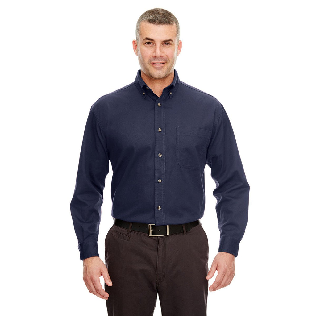UltraClub Men's Navy Cypress Long-Sleeve Twill with Pocket