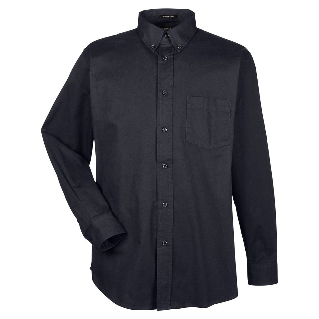 Dyed-to match buttons define the fashion features for the UltraClub Men's Black Whisper Twill. The elegantly designed buttons will attract the attention of your professional peers at the next business seminar. Since you have an audience, why not add your company logo to the large imprint area to increase exposure for your brand everywhere you go. The combination of cotton and polyester twill creates a comfortable dress shirt that delivers high-end fashion at the office and throughout an extended business trip. Dyed-to-match buttons complement the button-down collar to deliver corporate apparel that stands above the competition.Corresponding Women's Style: UltraClub Women's Black Whisper Twill