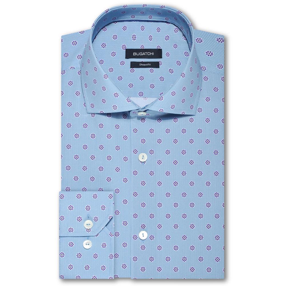 Bugatchi Men's Air Blue Spread Collar French Placket No Pocket Long Sleeve Shaped Fit