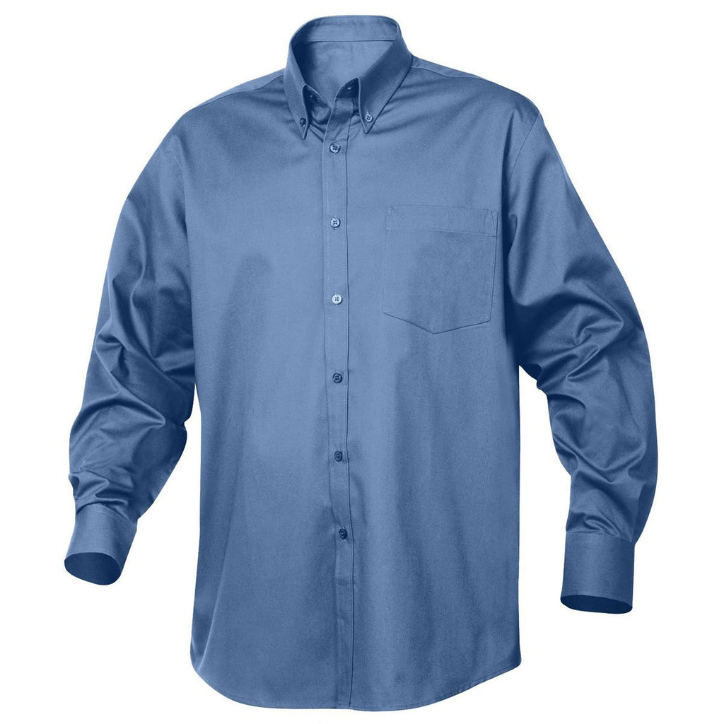 Stand out for all the right reasons at the next industry trade show by putting on the custom logoed Clique Men's Indigo Long Sleeve Carter Twill. The head turning design of the long sleeve shirt gives you the perfect opportunity to promote your products and services. Simply attach your company logo on the large embroidery area to expand awareness of your brand. Adjustable button cuffs ensure you achieve the most comfortable fit for the twill shirt. The blended cotton and polyester fabric receives a stain resistant treatment to help you retain a professional appearance throughout a daylong sales conference.Highlights