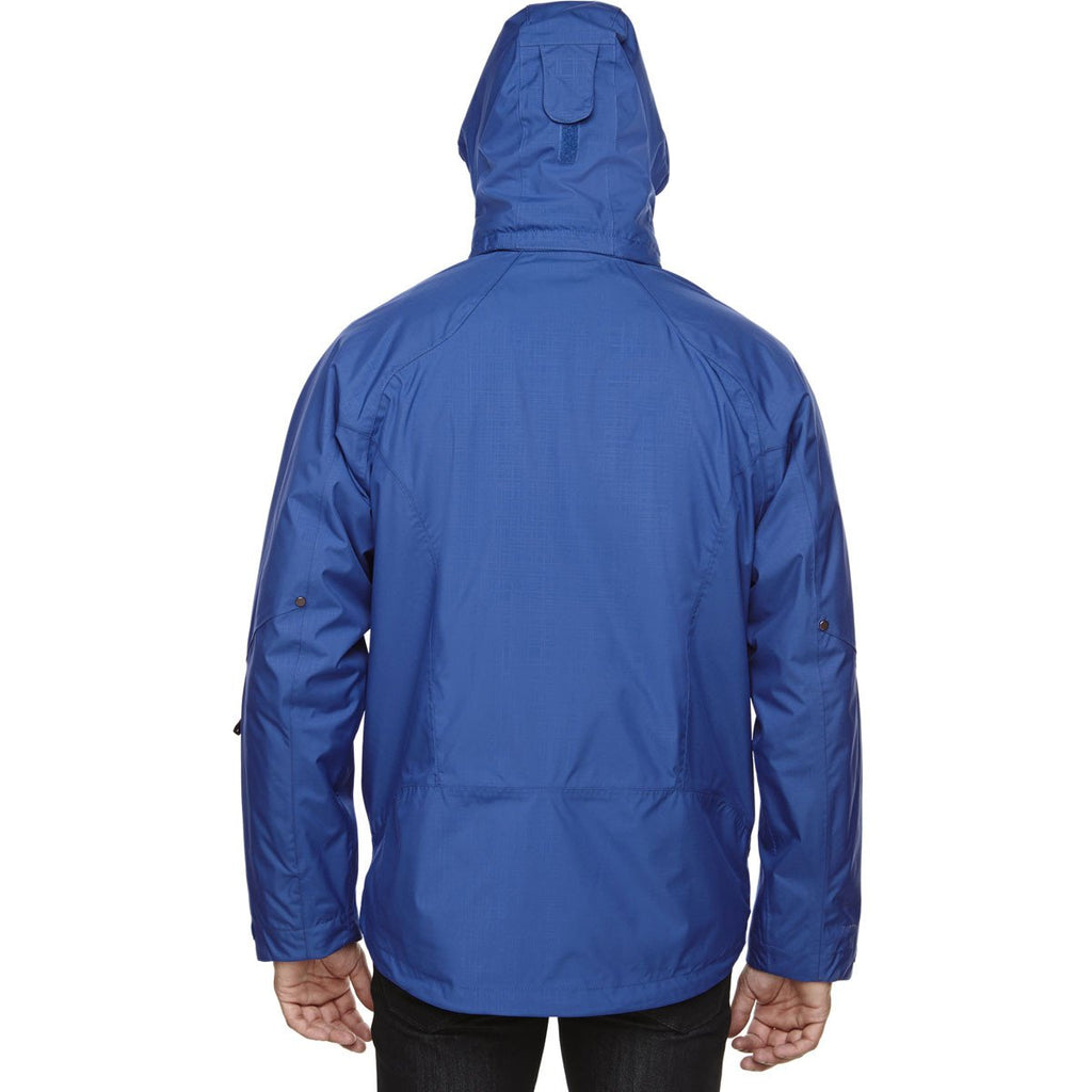 You never sweat the small stuff, whenever you wear the North End Men's Nautical-Blue Caprice 3-In-1 Jacket with Soft Shell Liner. The 100% polyester mesh in the upper body and hood provides maximum breathability on sweltering hot summer days. Enjoy wearing the completely seam-sealed waterproof shell during inclement weather any time during the year. Brushed tricot lined pockets store everything from car keys to your most important business documents. Add a custom logo to the North End Men's Nautical Blue Caprice 3-In-1 Jacket With Soft Shell Liner to promote your company at civic events. Give your employees and loyal customers this affordable outerwear to show your appreciation. The detachable hood conveniently stores in one of the lower reverse coil zippered pockets.Corresponding Women's Style: North End Women's Nautical Blue Caprice 3-In-1 Jacket with Soft Shell Liner