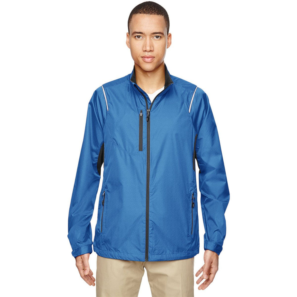A recycled jacket doesn't mean you wear a jacket put together using a wide variety of recycled parts. The North End Men's Nautical Blue Sustain Lightweight Dobby Jacket with Print contains 100% recycled polyester mini dobby to ensure long lasting durability. Reflective piping located on the front and back shoulders augMen'st the aesthetic appeal of this jacket, as well as give you an outer garMen'st that alerts drivers of your presence at night. The back vent system quickly expunges perspiration from your body. Partially concealed lower pockets offer the perfect place to store your electronic devices, as well as important business documents.Corresponding Women's Style: North End Women's Nautical Blue Sustain Lightweight Recycled Polyester Dobby Jacket with Print