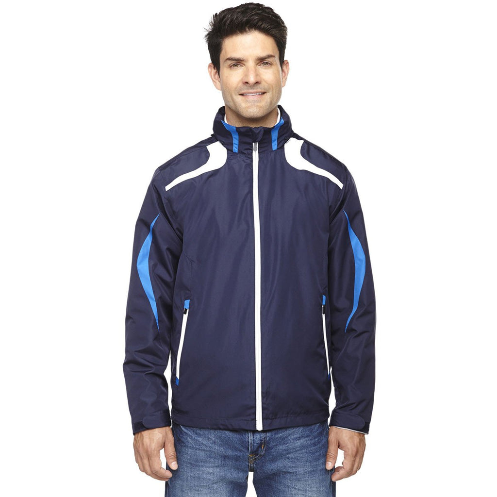 Lite doesn't mean you sacrifice quality for wearing a lightweight jacket. The North End Men's Night Impact Active Lite Colorblock Jacket contains a 100% polyester mesh lining that never tears. Enjoy the water resistant finish that keeps you dry during sudden downpours. While the finish keeps the water out, moisture wicking technology removes the moisture from your skin. The adjustable shock cord at the hem and hood gives you the flexibility to adapt to rapidly changing weather conditions. Manipulate the adjustable cuffs to maximize your comfort. Promote your company by adding a custom logo to the large chest imprint area.Corresponding Women's Style: North End Women's Night Impact Active Lite Colorblock Jacket