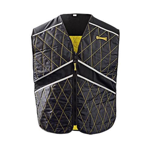 The OccuNomix Men's Black Micracool Plus Evaporative Vest relies on advanced cooling technology to relieve workers who work outdoors in the heat. Soak this vest in water for 1-2 minutes to keep you cooler and more comfortable while outdoors. Once wet, it activates by wicking away moisture from the body and provides cooling relief for hours. Its low-maintenance cooling system comfortably manages heat stress. This vest features wicking birdseye panels for great fit and breathability. It flaunts stylish yellow quilted reflective detailing on black base for added visibility. Embodies one interior pocket. Durable and machine washable.Highlights