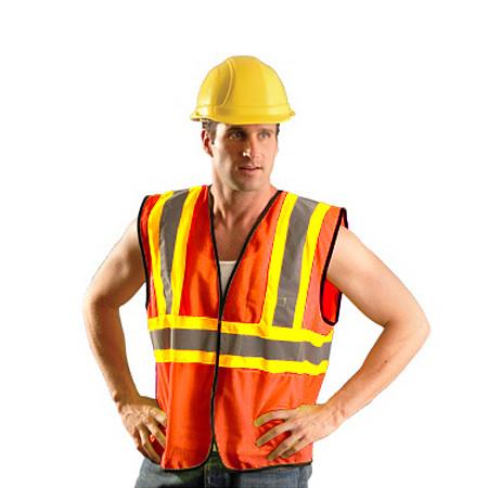 If you work outside at night, you need to wear a safety vest that alerts motorists of your presence. OccuNomix designs and manufactures a line of safety vests that include two-inch wide high visibility reflective tape that motorists can see from several hundred feet away. Large openings allow you to wear the OccuNomix Men's Orange High Visibility Value Mesh Two-Tone Safety Vest over heavy jackets during cold weather work projects. OccuNomix adds several easy to access pockets for storing important work-related tools, such as a tape measurer or a Phillips screwdriver. Highly breathable mesh keeps you comfortable on hot, humid summer days.