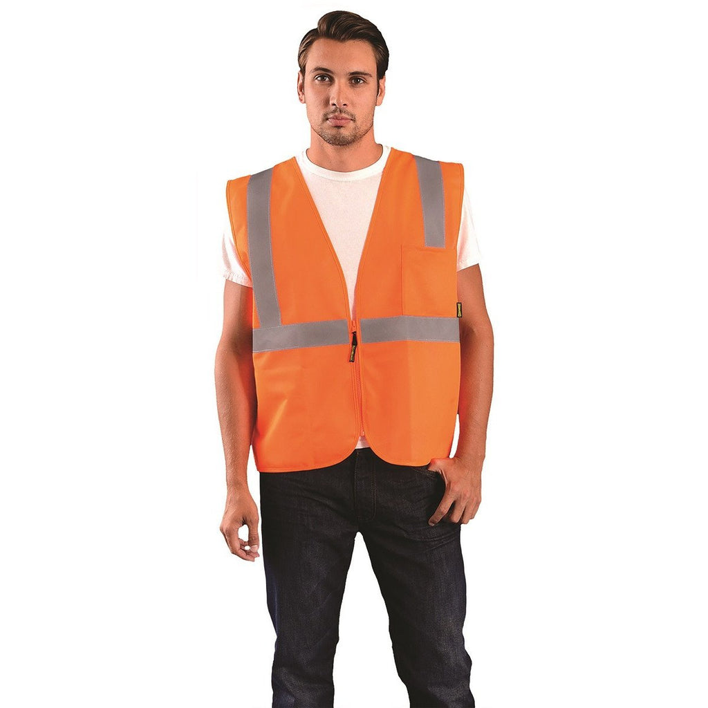 OccuNomix Men's Orange High Visibility Value Solid Standard Zipper Safety Vest