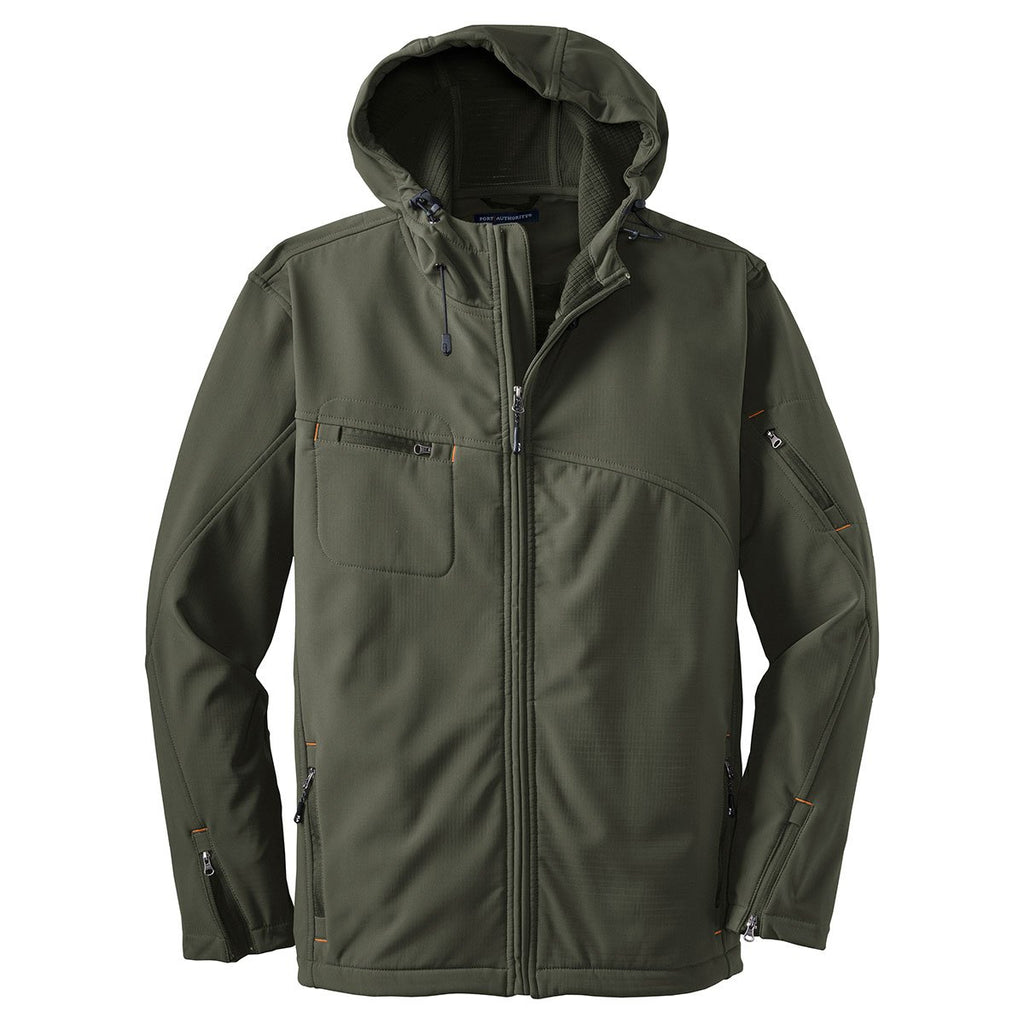 Port Authority Men's Mineral Green/Soft Orange Textured Hooded Soft Shell Jacket
