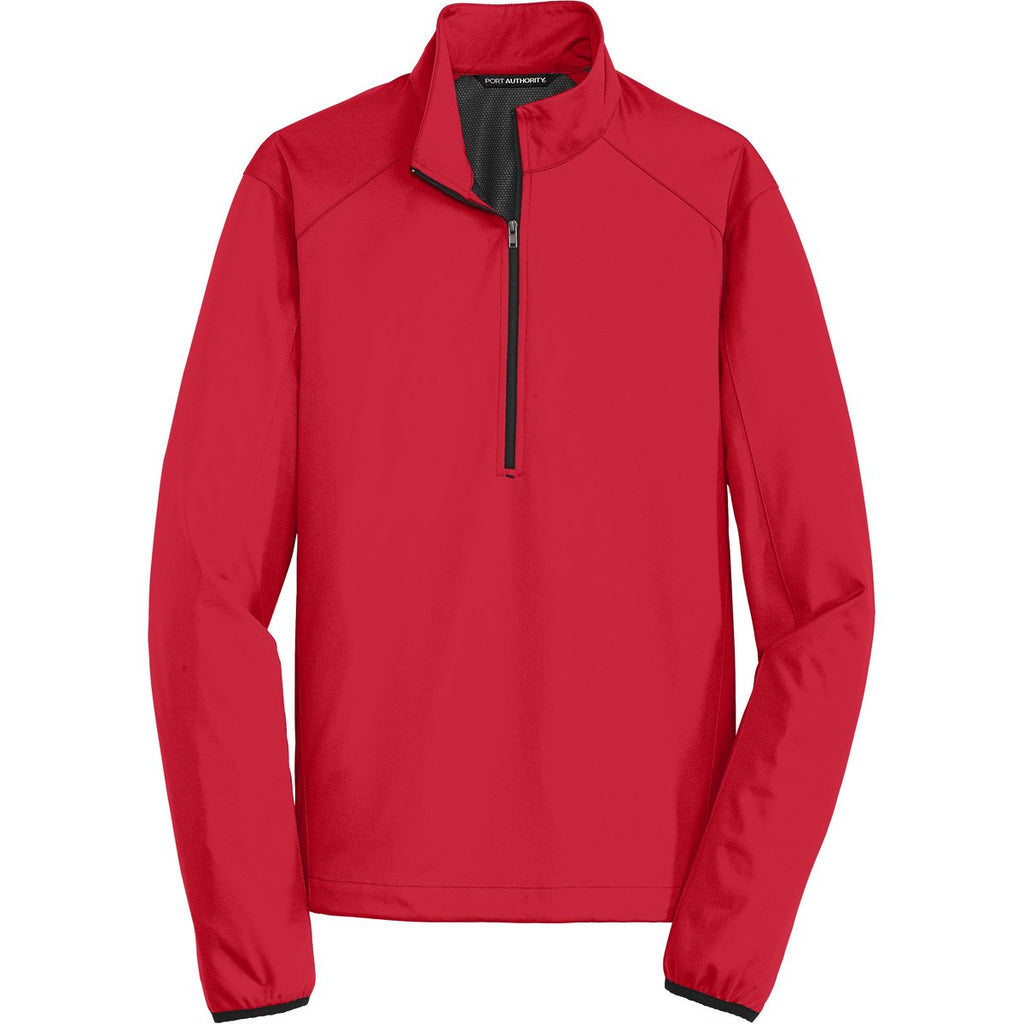 Have you ever worn a jacket that made you feel rigid? You couldn't wear the jacket for performing home improvement projects, because the jacket stiffened every time you needed to reach for something or wrap your arms around an object. The versatile Port Authority Men's Rich Red Active 1/2-Zip Soft Shell Jacket allows plenty of stretch to maximize movements. It looks professional for work and suave for attending social events. Water resistant polyester keeps you dry during a sudden downpour. The highly breathable interior mesh liner circulates air to eliminate sweat. Add your company logo to the jacket for promoting your brand at professional networking events.Highlights