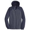 Corresponding Women's Style: Sport-Tek Women's True Royal Heather/Black Colorblock Raglan Hooded Wind Jacket