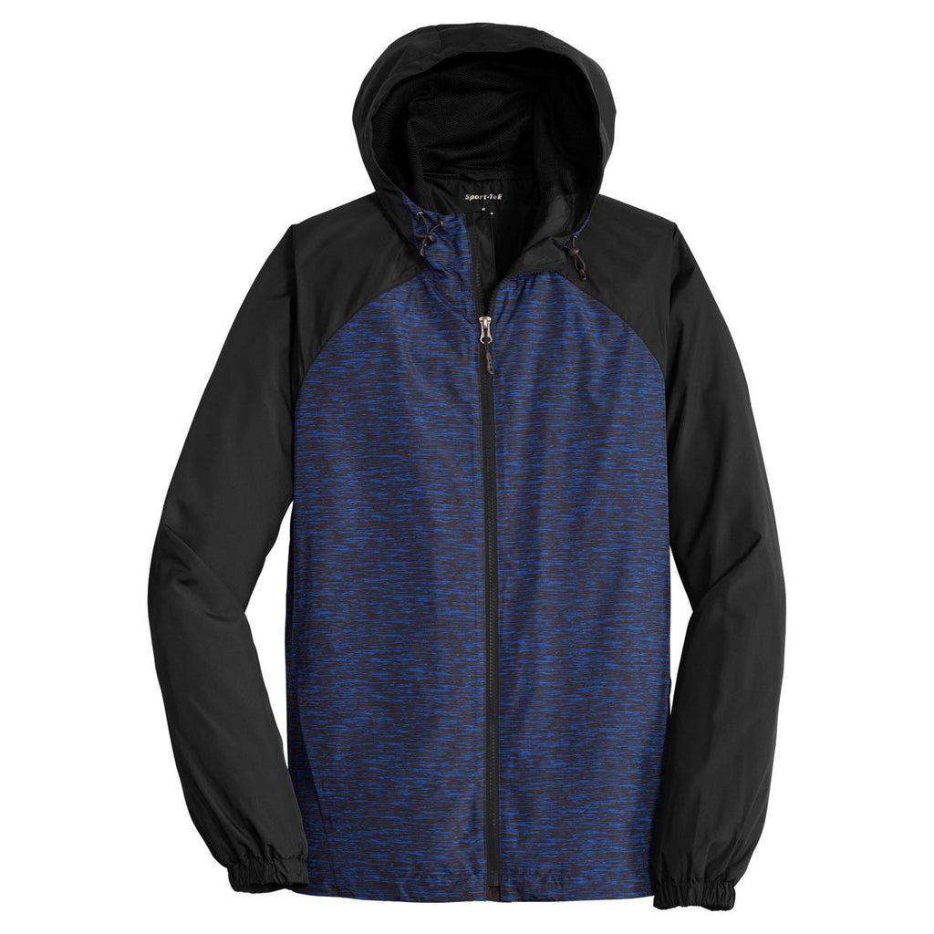 Sport-Tek Men's True Royal Heather/Black Colorblock Raglan Hooded Wind Jacket