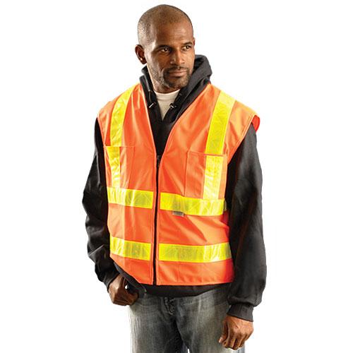 OccuNomix Men's Orange High Visibility Premium Solid Dual Stripe Gloss Safety Vest