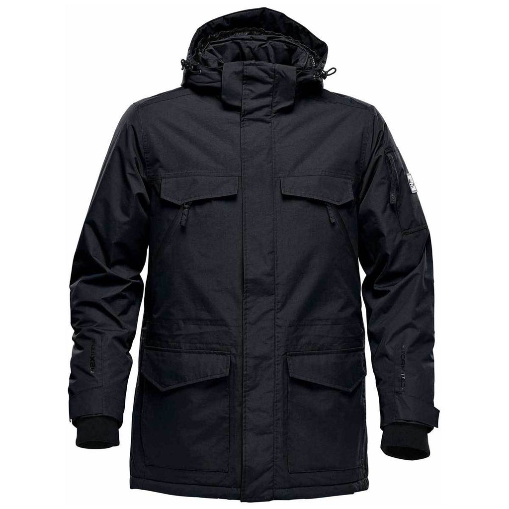 Enjoy outdoor adventures in the Stormtech Men's Black Fairbanks Parka. Add your custom embroidery to this parka that was made for the extremes in life. A waterproof level of two means this jacket will not only keep you warm, but dry when that wet snow and ice begins to fall. For those that enjoy the outdoors in spite of the weather report, this custom jacket is a must have. Made to maximize your core temperature with a combination thermal shell and sherpa fleece lining, this jacket will make the high-end gift that everyone will want and love. Offer these as an employee gift with a custom logo of your choosing.Corresponding Women's Style: Stormtech Women's Black Fairbanks Parka