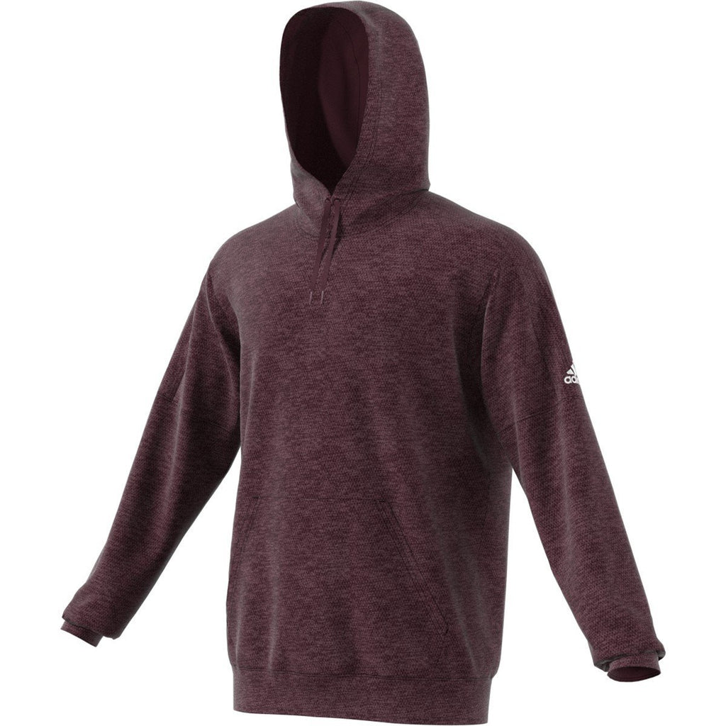 Before the next industry trade show, order the adidas Men's Maroon Melange Team Issue Pullover to give to your employees working at the booth. The fashionable pullover features rugged 100% polyester fabric that resists rips and tears. Adjust the draw cord to find the most comfortable fit for the hood. With the iconic adidas brand logo located on the left chest, you have the opportunity to make your company shine by adding a custom logo on the large imprint area. Your employees will appreciate receiving a high quality hoodie with some added style. Wear the pullover as an outer layer or as the middle layer of a cold weather fashion ensemble.Highlights