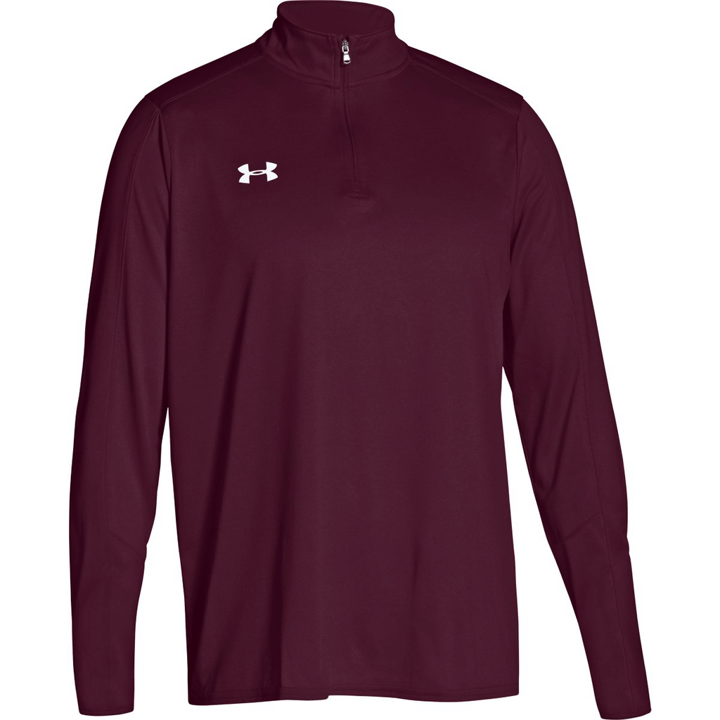 Who says you can't be every bit the athlete while feeling as comfortable as possible? With the Under Armour Men's Maroon Locker Quarter Zip, you'll get the best of both worlds. The 100% polyester is ultra soft, giving you a natural, comfortable feeling. Wear the quarter zip to work or out on the golf course, and feel comfortable all day long. The Under Armour logo is subtle, giving you the room you need for your custom embroidered logo on the front. If you want to stay active in cool weather all while rocking your own brand, look no further. You've found the quarter zip for you.Corresponding Women's Style: Under Armour Women's Maroon Locker 1/4 Zip