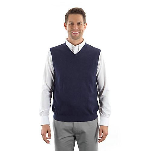 Adding a bit of layering to a shirt or an outfit without losing the quality of that outfit? Not always easy. But it will be a cinch when you pick up one of these Van Heusen Men's Navy V-Neck Sweater and add it to your wardrobe. After all, the comfortable cotton/rayon fabric with yarn added to the cuff to prevent stretching, it's all the kind of quality you'd want from a V-neck that's serious about being part of your next outfit. Elevate it to a promotional item by adding your custom logo on to the front with Merchology, making it ideal for events, uniforms, and much more.Highlights