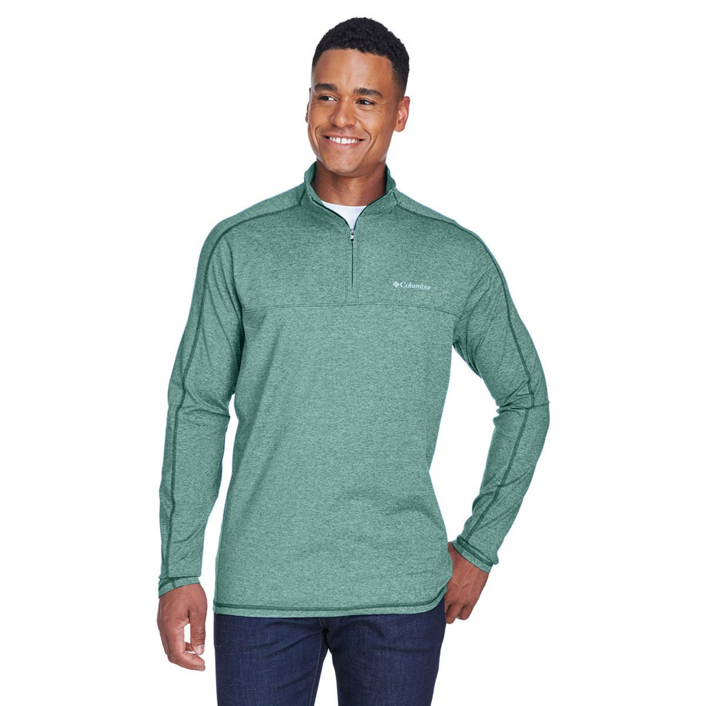 Employees need to look their best regardless of weather. Columbia Men's Dark Ivy Heather Tenino Hills II Half-Zip allows your employees to stay warm in colder weather. Add a custom logo as a way to advertise on your employee apparel or to showcase your company at a trade show. The Half-Zip omni-wick pullover is perfect for working outdoors or as a lightweight jacket for moving from the office to the gym. Feel great and look great while showing allegiance to your company with this custom embroidered half-zip that will have everyone asking where you found such a great product. Perfect for gifts at corporate events or recruiting. Order yours today.Highlights