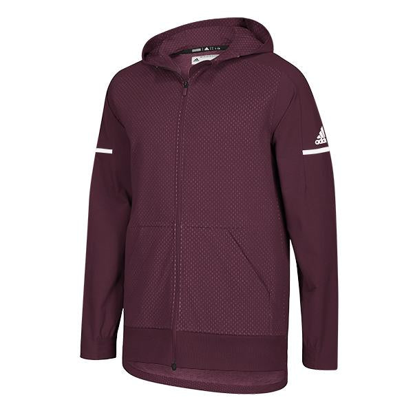 Get selected to the best corporate fashion squad by putting on the branded adidas Men's Maroon/White Squad Jacket. The stylish jacket includes a stand collar, as well as ribbed hem, cuffs, and collar to make you the apparel star at the next company sponsored event. Super soft cotton feels soft on the body to keep you energized during intense athletic competitions. Rugged polyester withstands the punishment absorbed from your active lifestyle. Machine wash the track jacket and never have to worry about the colors fading. Add your company logo to reach more customer prospects at industry conventions.Highlights