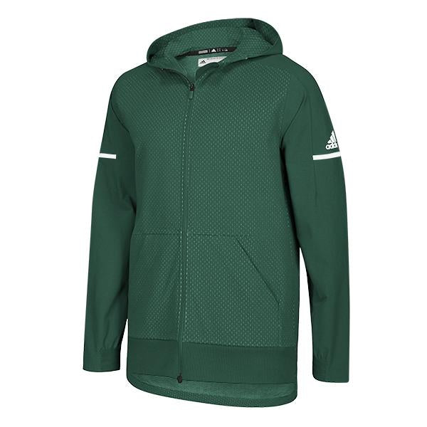 Get selected to the best corporate fashion squad by putting on the branded adidas Men's Dark Green/White Squad Jacket. The stylish jacket includes a stand collar, as well as ribbed hem, cuffs, and collar to make you the apparel star at the next company sponsored event. Super soft cotton feels soft on the body to keep you energized during intense athletic competitions. Rugged polyester withstands the punishment absorbed from your active lifestyle. Machine wash the track jacket and never have to worry about the colors fading. Add your company logo to reach more customer prospects at industry conventions.Highlights