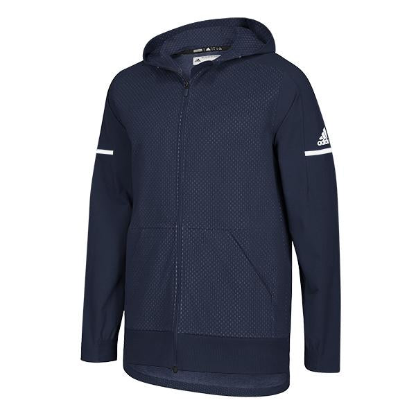 Get selected to the best corporate fashion squad by putting on the branded adidas Men's Collegiate Navy/White Squad Jacket. The stylish jacket includes a stand collar, as well as ribbed hem, cuffs, and collar to make you the apparel star at the next company sponsored event. Super soft cotton feels soft on the body to keep you energized during intense athletic competitions. Rugged polyester withstands the punishment absorbed from your active lifestyle. Machine wash the track jacket and never have to worry about the colors fading. Add your company logo to reach more customer prospects at industry conventions.Highlights