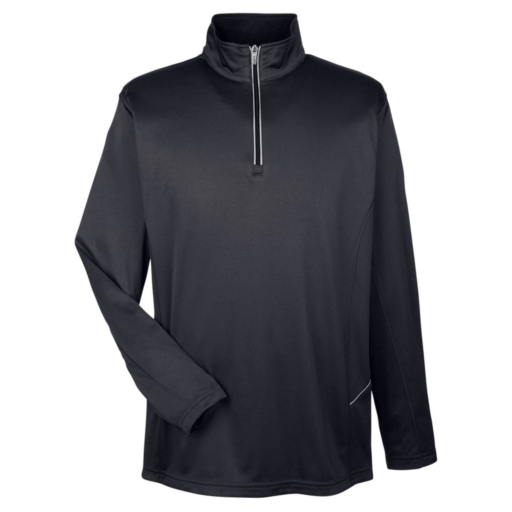 UltraClub Men's Black Cool & Dry Sport Quarter-Zip Pullover