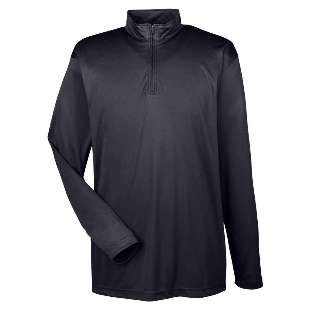 UltraClub Men's Black Cool & Dry Sport Performance Interlock Quarter-Zip Pullover
