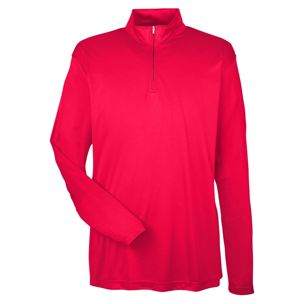 UltraClub Men's Red Cool & Dry Sport Performance Interlock Quarter-Zip Pullover
