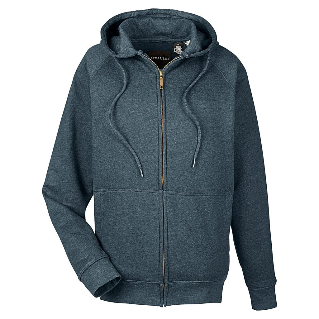 UltraClub Men's Dark Heather Grey Rugged Wear Thermal-Lined Full-Zip Hooded Fleece
