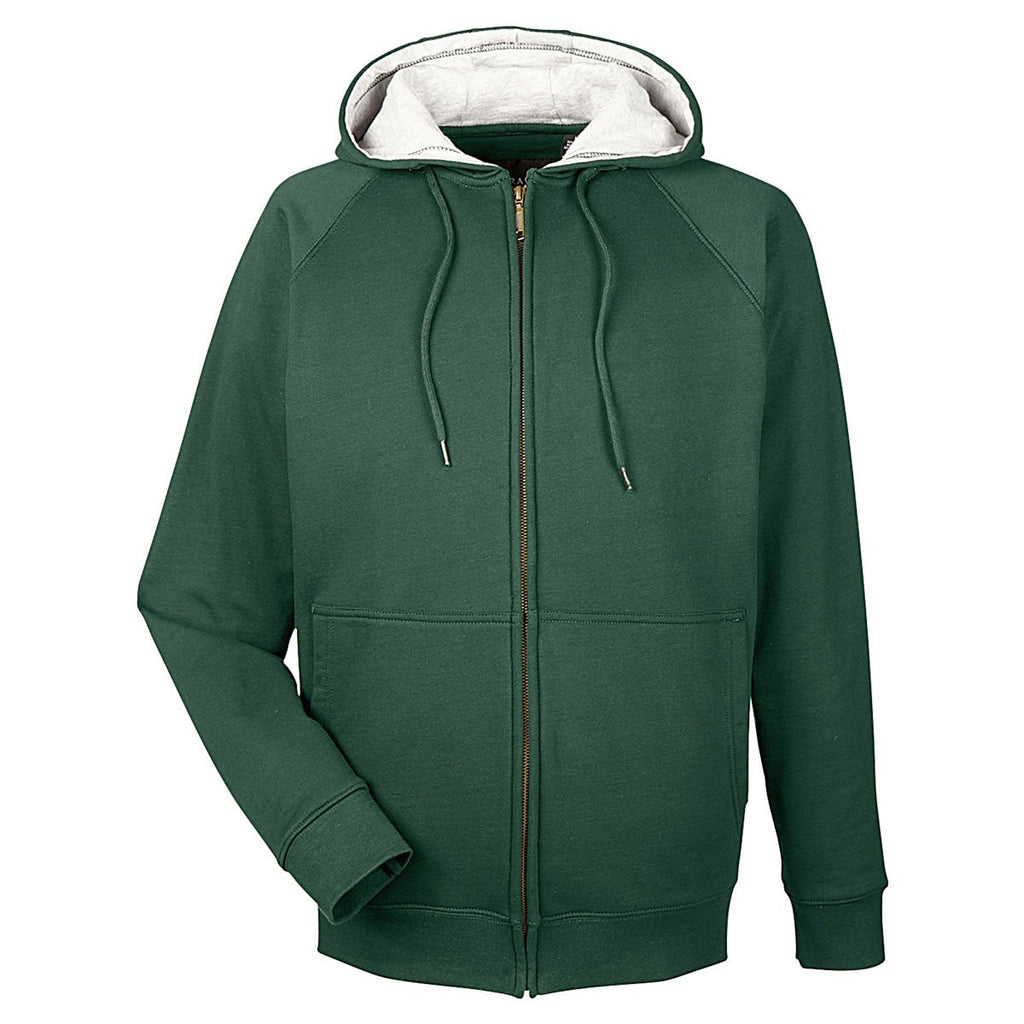 UltraClub Men's Forest Green/Heather Grey Rugged Wear Thermal-Lined Full-Zip Hooded Fleece
