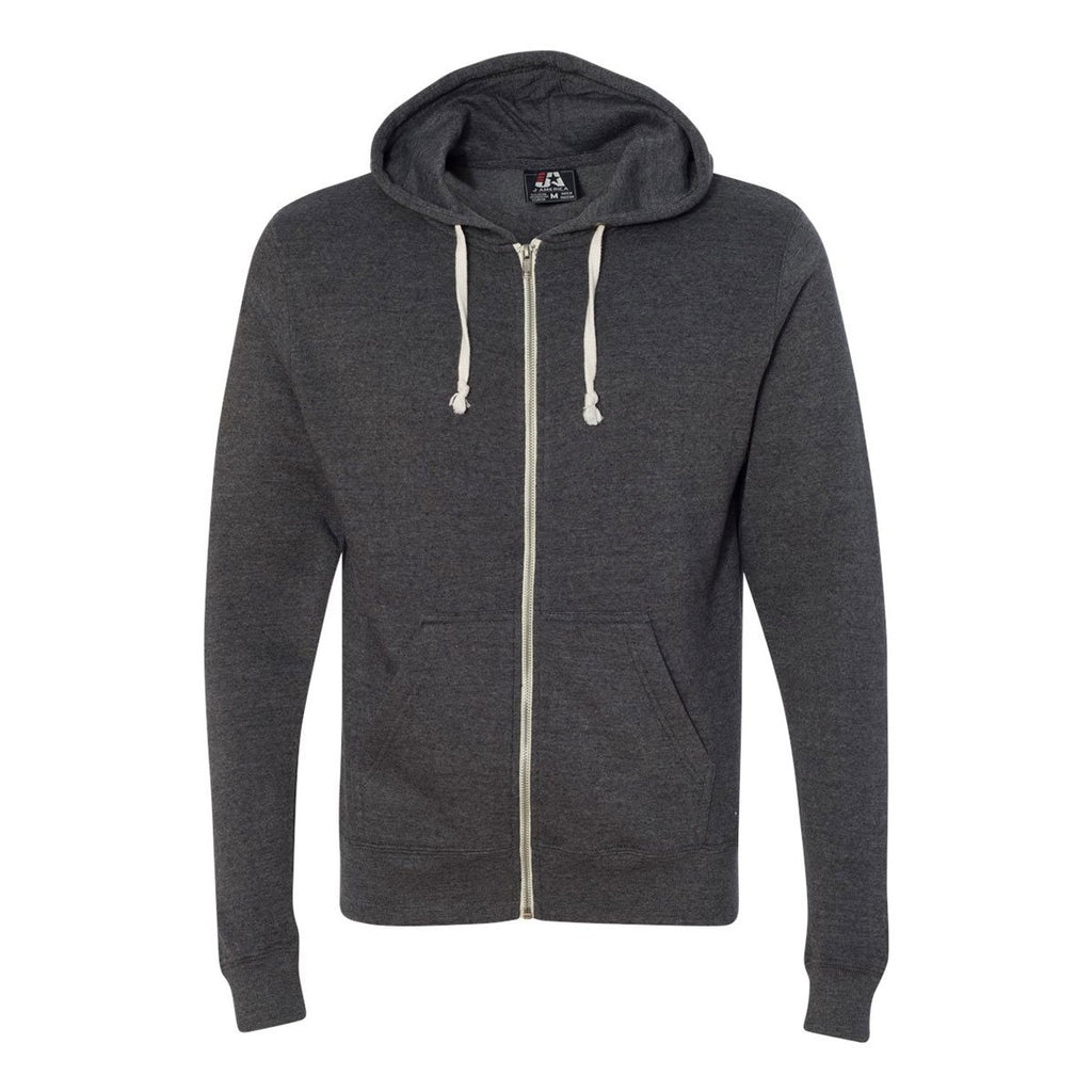 J. America Men's Black Triblend Triblend Hooded Full-Zip Sweatshirt