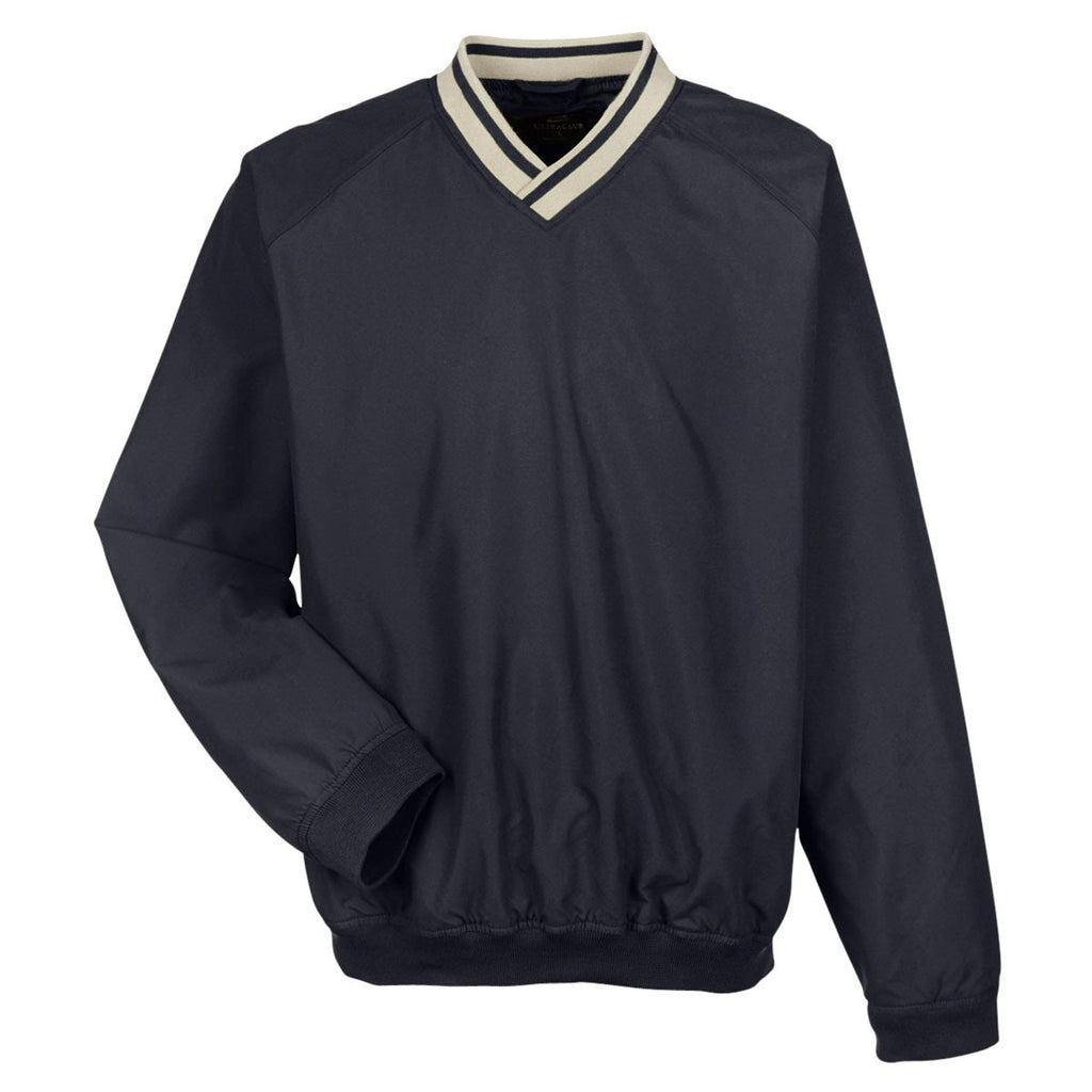 UltraClub Men's Black/Tan Long-Sleeve Microfiber Crossover V-Neck Windshirt