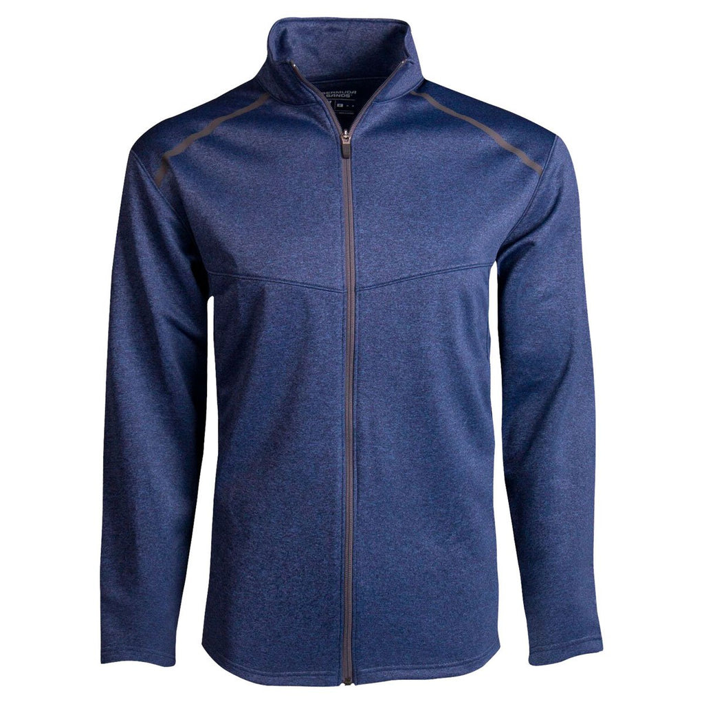 Cover all the golf apparel bases by wearing the logoed Bermuda Sands Men's Navy Delta Full Zip. You'll never have to worry about a sudden storm taking you by surprise during a round of golf. Store the easy to fold full zip jacket inside a golf bag compartment to be prepared for a drop in temperature. One-hundred percent polyester micro fleece fabric resists the types of rips and tears caused by hanging tree branches. The sleek straight cut bottom complements the design of traditional golf shirts and pants. Add your corporate logo on the large imprint area to give your brand a boost at industry trade shows.Highlights