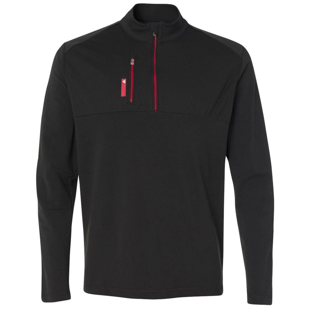 Adidas Golf Men's Black/Bold Red Mixed Media Quarter-Zip Jacket