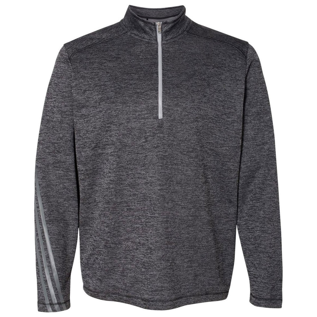 As colder weather descends upon us let the Adidas Golf Men's Black Heather/Mid Grey Brushed Terry Heather Quarter-Zip keep you warm and toasty. Made of 100% polyester with reflective gradient 3-stripes on the right forearm and Adidas logo, the brushed terry offers a professional look with a comfortable feel. Great for layering with custom Adidas polo shirts, these quarter-zip pullovers could serve as part of employee apparel or just an added layer at the next trade show. Add your company logo or corporate embroidery for that little extra on the already amazing pullover. Start your design and place an order today. We are waiting to hear from you!Corresponding Women's Style:Adidas Golf Women's Black Heather/Mid Grey Brushed Terry Heather Quarter-Zip